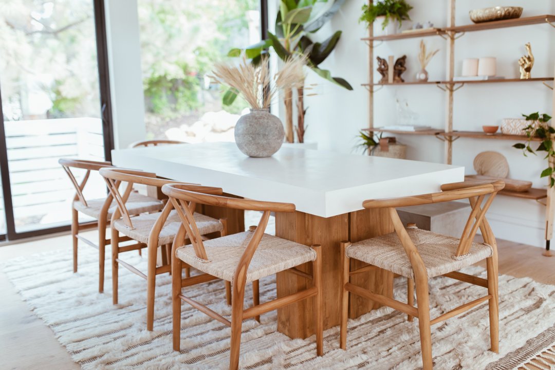Thanks to the patterned fabric on the chairs that actually match.